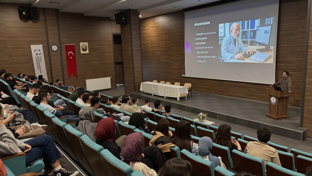 Dönem 2 ve Dönem 3 ögrencilerine yönelik Sağlıkta Yapay Zeka dersi kapsamında Dr. Yusuf Yeşil tarafından Girişimcilik, Teknoloji ve Tıp konulu sunum gerçekleştirildi.