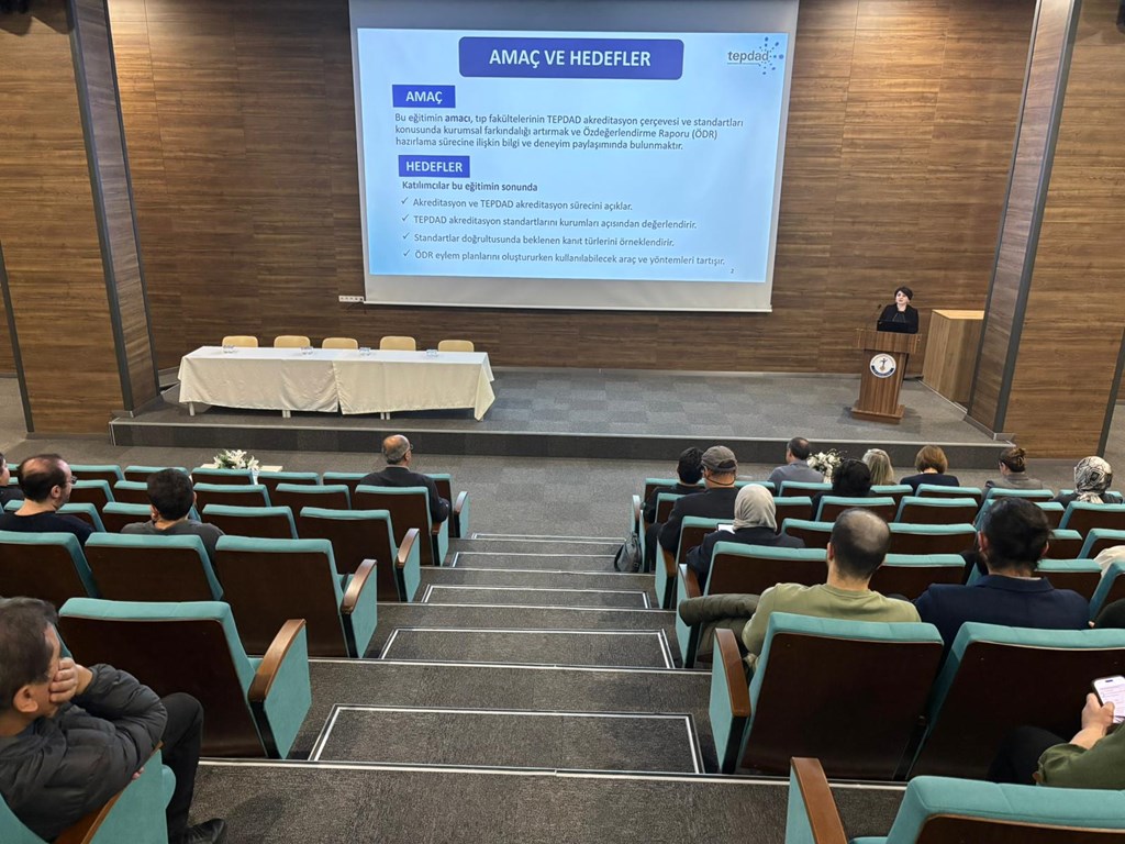 Mezuniyet Öncesi Tıp Eğitimi Programlarını Değerlendirme ve Akreditasyon Derneği (TEPDAD) tarafından, Fakültemizde yürütülen akreditasyon süreci kapsamında, Fakültemiz Öz Değerlendirme Kurulu üyelerine yönelik kapsamlı bir eğitim programı düzenlendi.