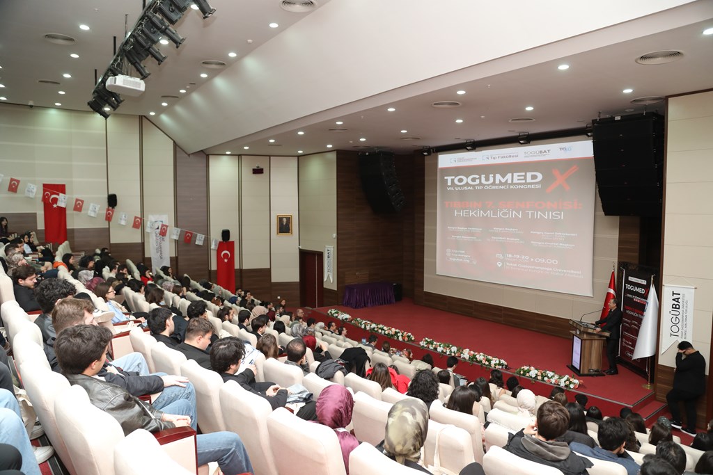 Fakültemiz TOGÜBAT öğrenci kulübü tarafından Üniversitemiz 15 Temmuz Kongre ve Kültür merkezinde düzenlenen VII. Ulusal Tıp Öğrenci Kongresi başladı. Dekanımız Prof. Dr. Raşit Kılıç ve Kongre Başkanı Ahmet Furkan Gülhan'ın açılış konuşmaları sonrasında gün boyu süren oturumlarda sırasıyla; Prof. Dr. Muhammed Keskin (Kardiyoloji A.D.), Prof. Dr. Abdullah Özgür Yeniova (Dahiliye A.D.), Prof. Dr. Berrak Çağlayan Yeğen (Fizyoloji A.D. / TEPDAD UTEAK Başkanı), Prof. Dr. Cihan Aksoy (Fizik Tedavi ve Rehabilitasyon A.D.) ve öğrenciler sunumlarını gerçekleştirdi. Kongre yarın yapılacak sunumlar ile devam edecek.